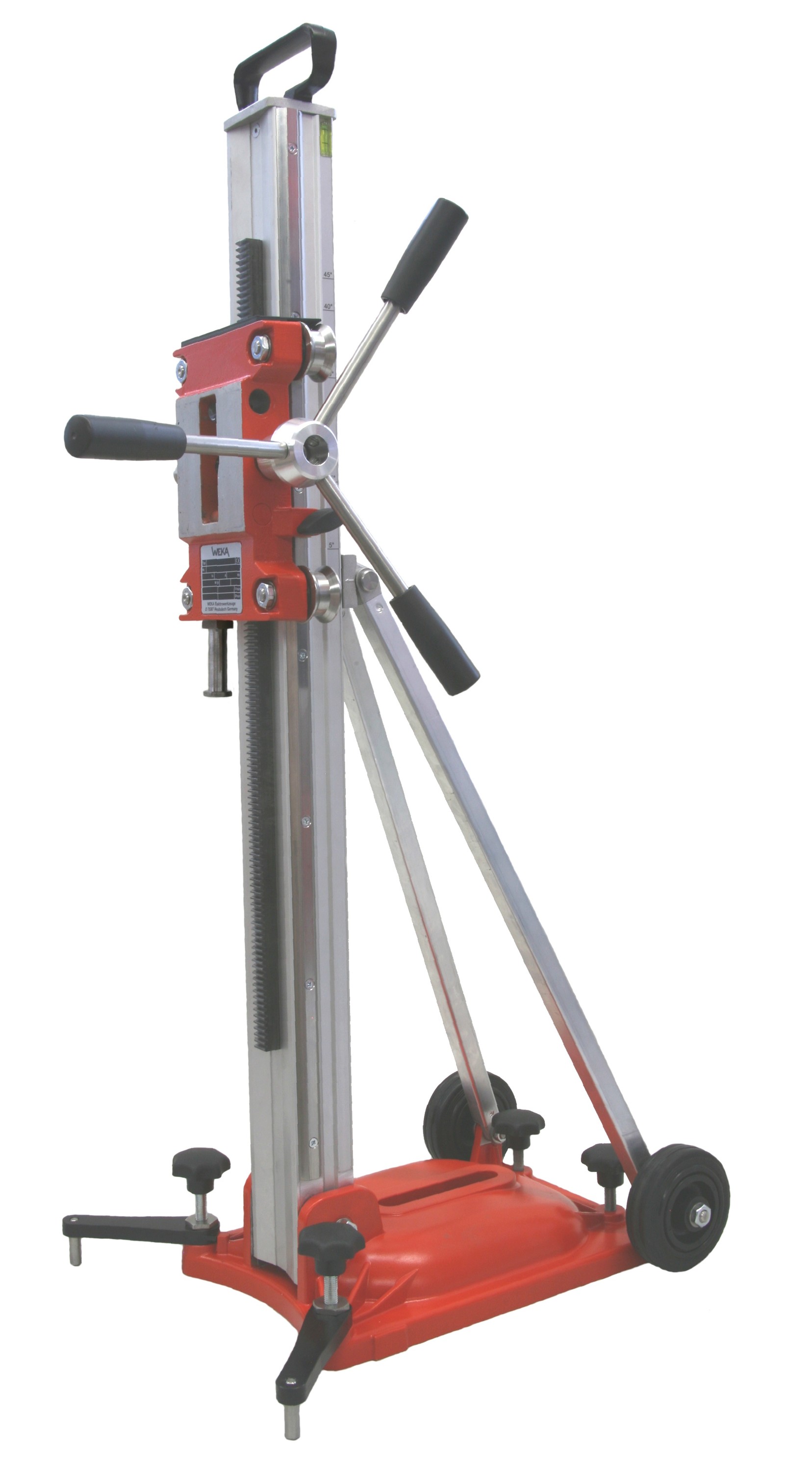 Kernbohrungen bis max. Ø 350mm, Ständerfuss aus Stahl oder Aluminium, stabile Rollenführung gewährleistet präzises Bohren, einfache Montage der Bohrmaschine dank Schnellwechselsystem.