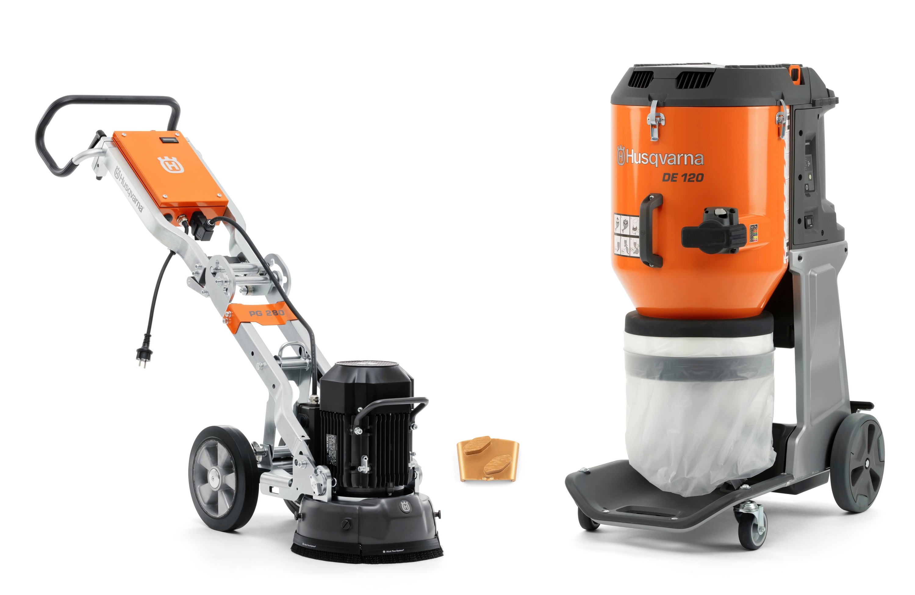 Husqvarna Bodenschleifmaschine PG 280 mit 12x Vari-Grind EZ S und Staubsauger DE 120 Trockensauger HEPA 220 mbar S 26 und Systainer